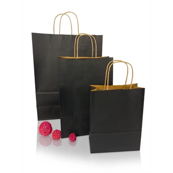 Sodrottfüles papírtáska 185x240mm 80mm talp S méret 250 db/doboz, fekete
